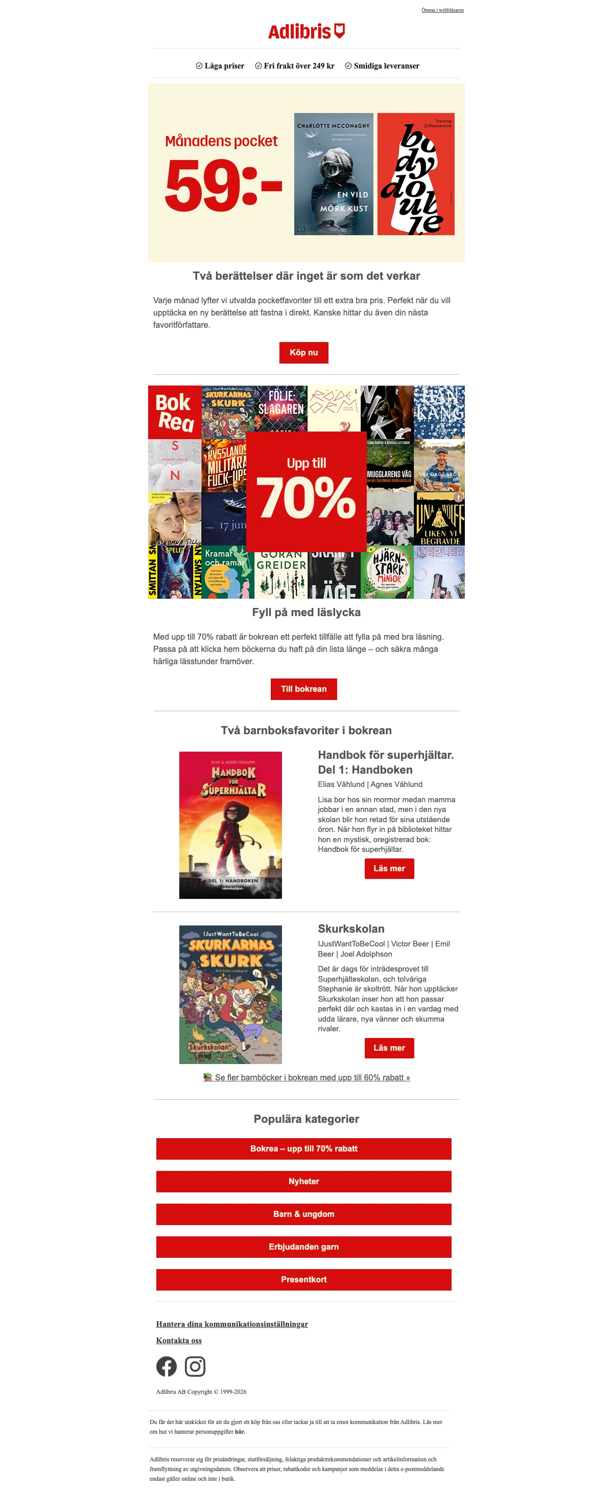Adlibris bokrea rea på böcker – upp till 70% rabatt och fri frakt