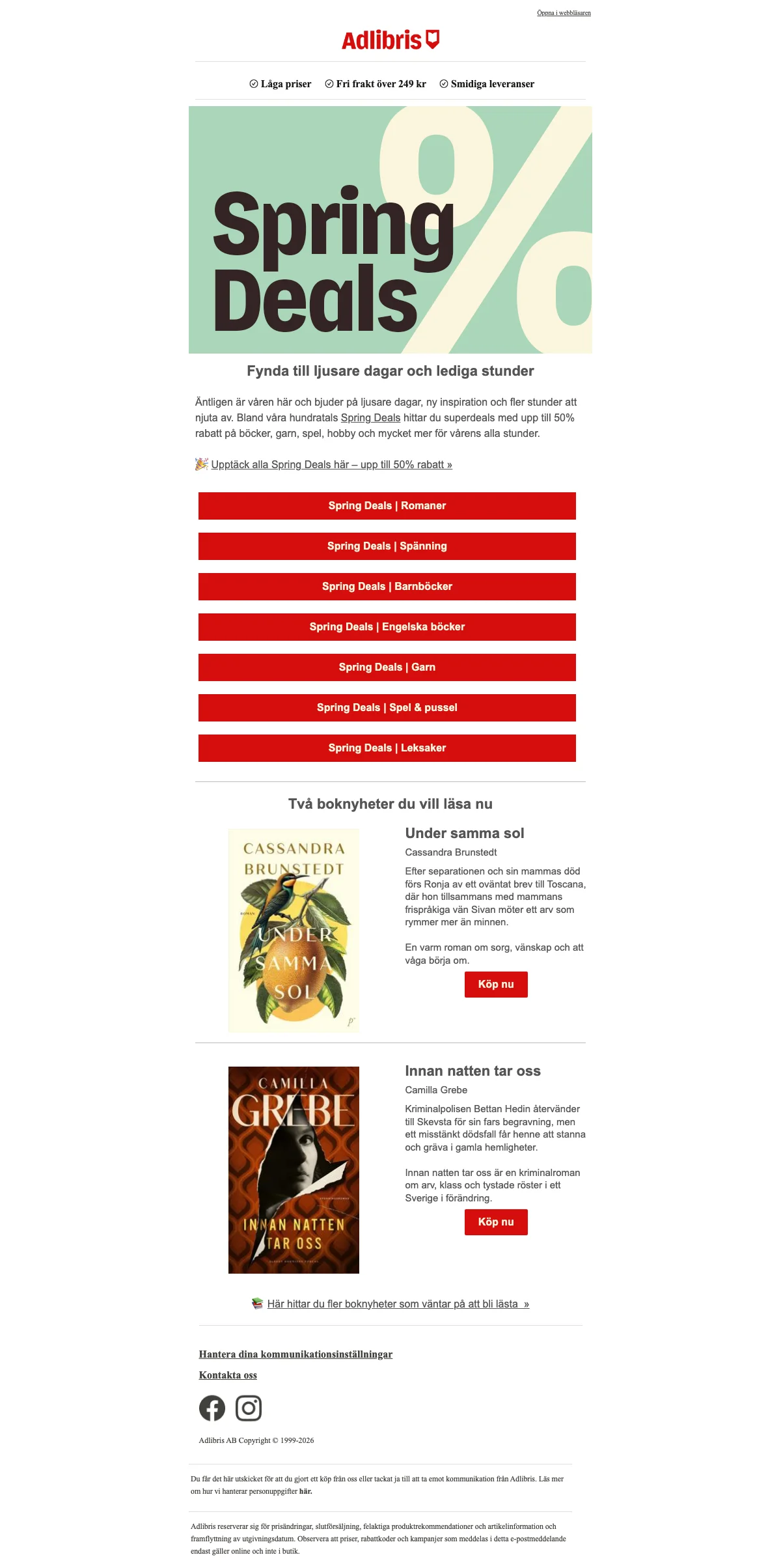 Adlibris bokrea rea på böcker upp till 70% rabatt — fri frakt
