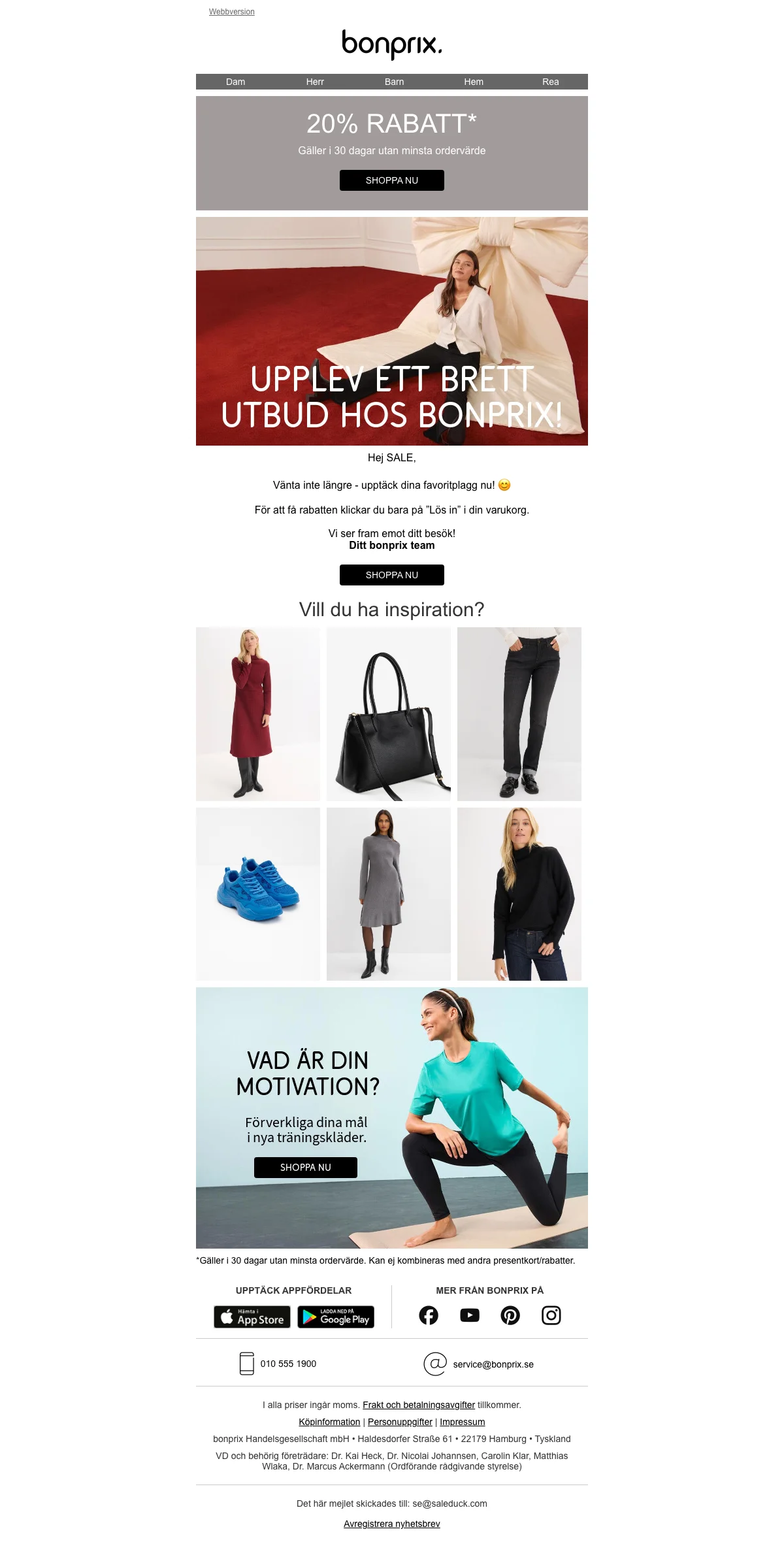 Bonprix rabatt första beställningen 20% rabatt i 30 dagar