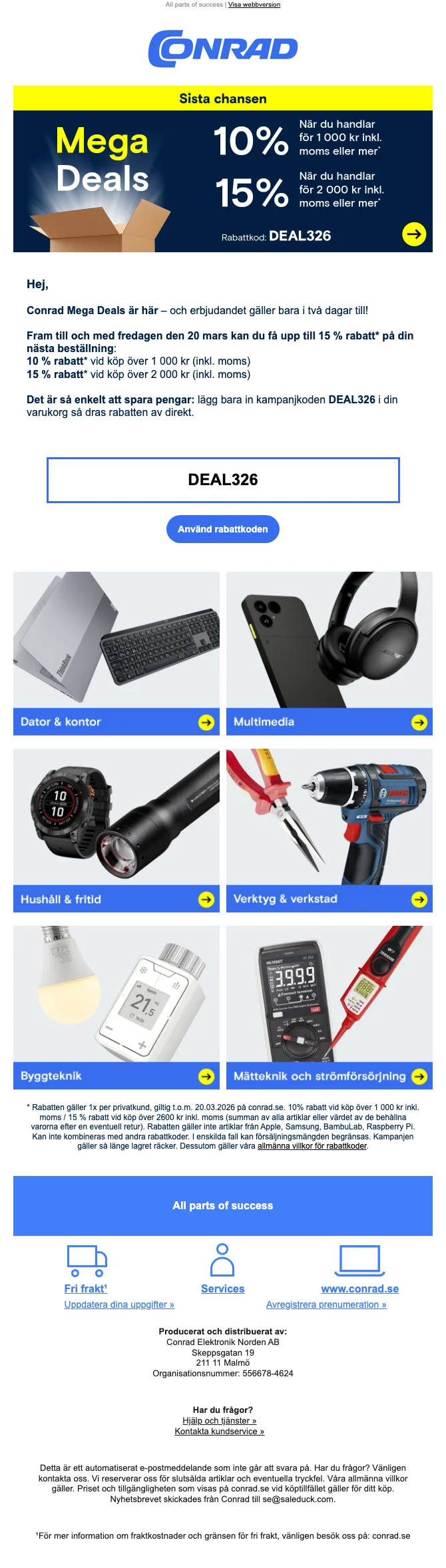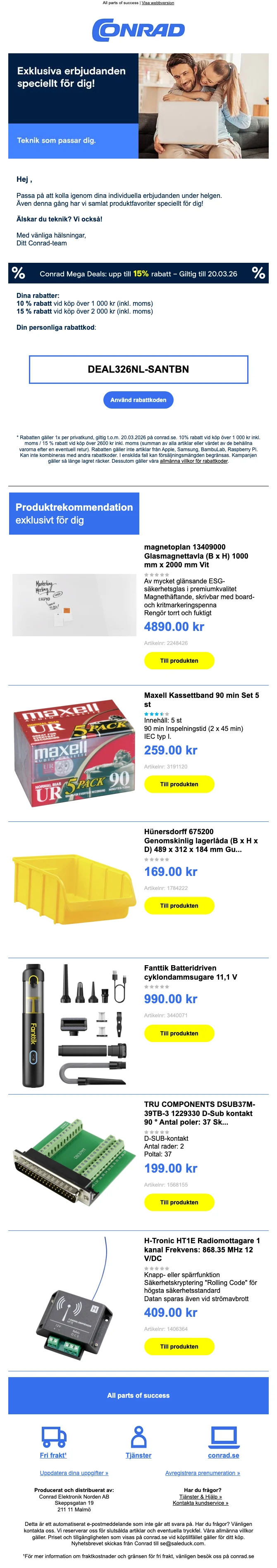 Conrad megaerbjudande elektronik upp till 15% rabatt vid köp