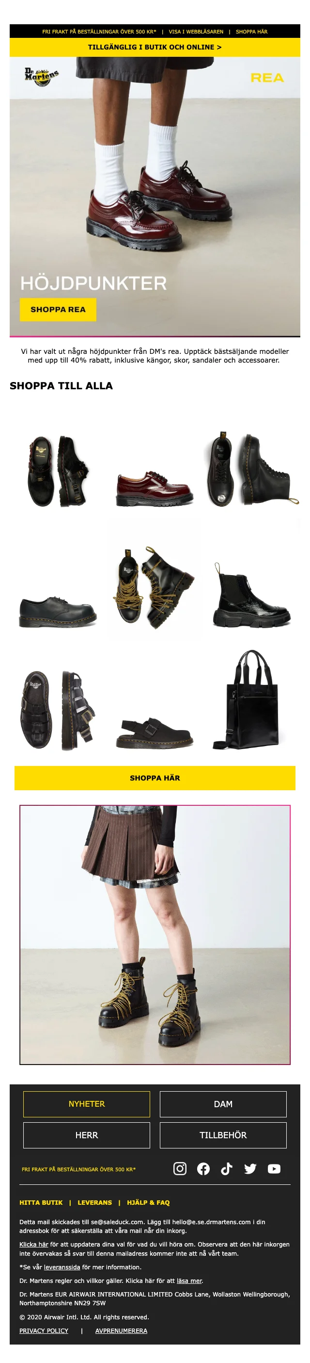 Upptäck utvalda bästsäljare med upp till 40% rabatt på kängor, skor, sandaler och accessoarer. Fri frakt vid beställningar över 500 kr gör det billigare att handla större köp. Erbjudandet gäller både i butik och online enligt gällande villkor.