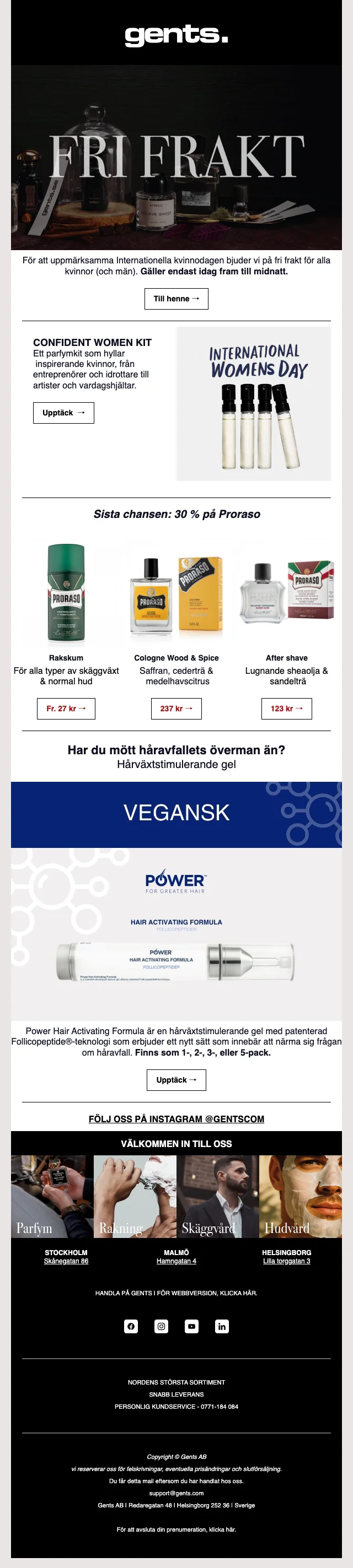 Gents kvinnodag fri frakt idag – fri frakt till midnatt