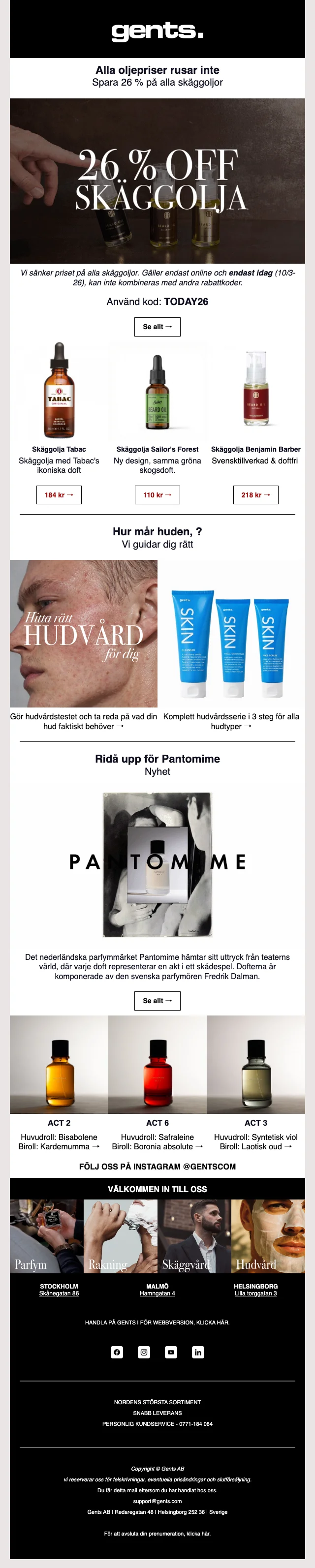 Gents rabatt på skäggoljor 26% rabatt – endast online idag