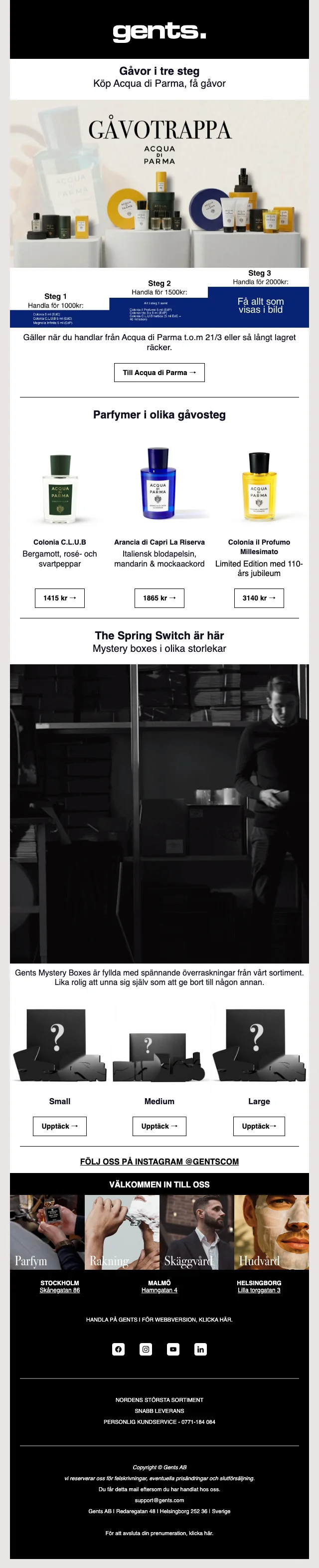 För att göra din shoppingupplevelse ännu mer tillfredsställande erbjuder Gents regelbundna kampanjer och specialerbjudanden till deras kunder. Dra nytta av dessa förmånliga erbjudanden genom att använda en rabattkod i kassan. Få ett extra fördelaktigt pris på din parfym eller andra produkter och fynda idag.