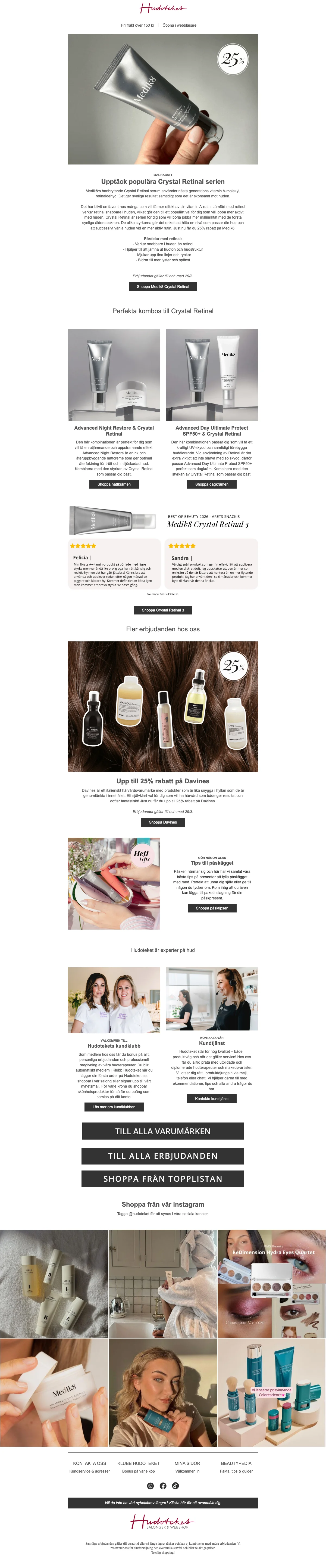 Hudoteket Crystal Retinal 25% rabatt på Medik8-serien