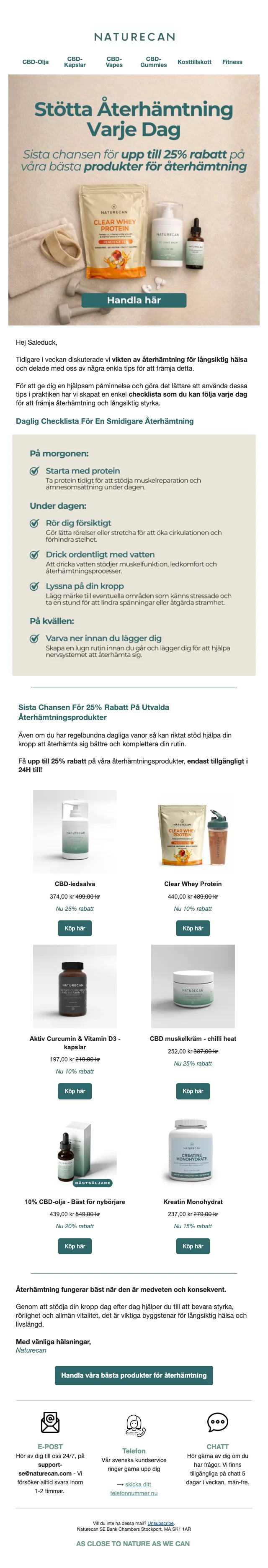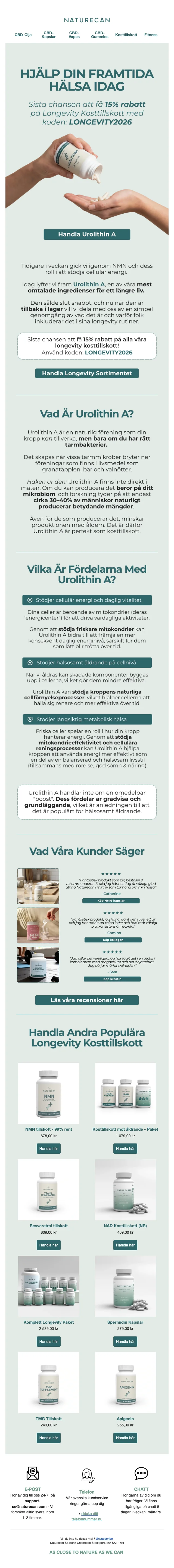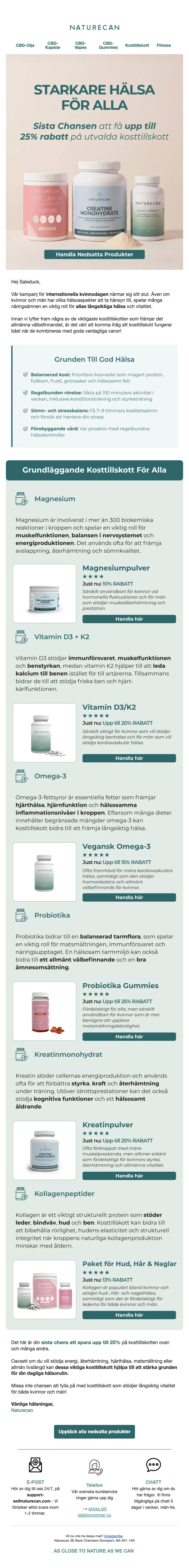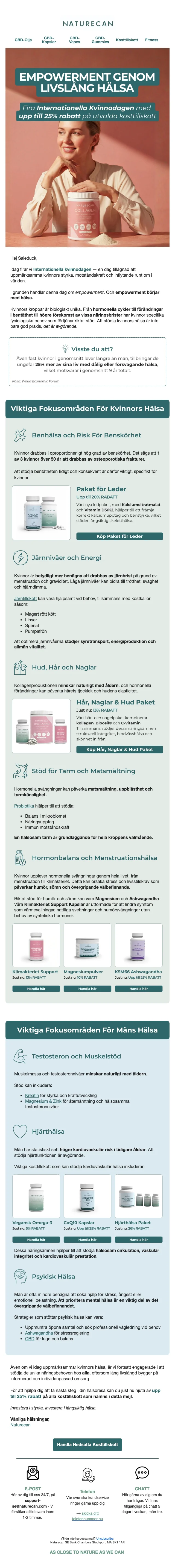 För Naturecan är det viktigt att göra produkterna både mer tillgängliga och prisvärda. Därför erbjuder de regelbundet rabatter som ger dig möjlighet att spara på dina inköp. Utforska deras webbplats och håll dig uppdaterad om deras senaste erbjudanden och kampanjer. Med rabattkoder kan du investera i din hälsa och välmående utan att kompromissa med kvaliteten.