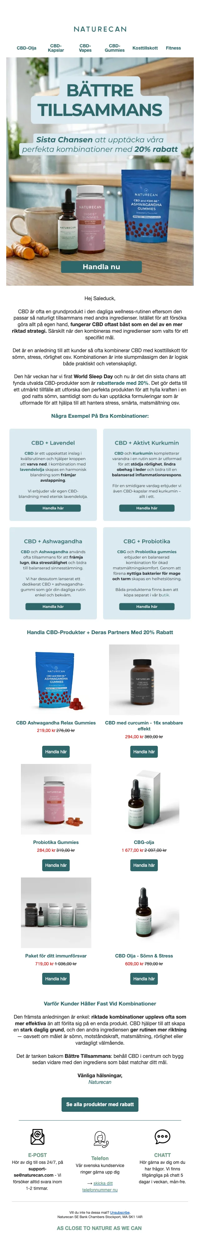 Naturecan CBD-produkter 20% rabatt på utvalda kombinationer