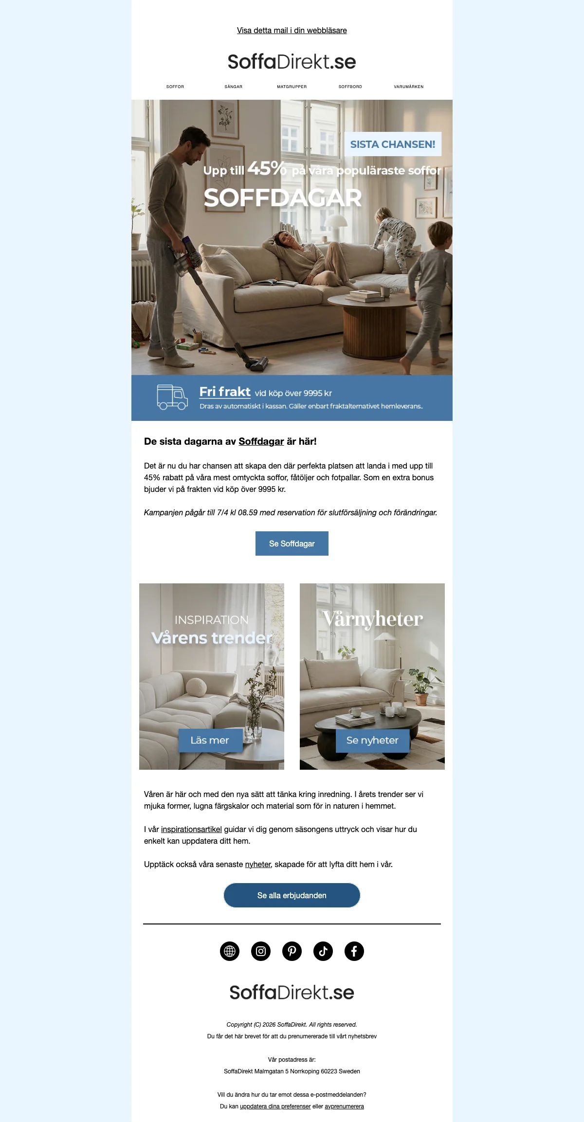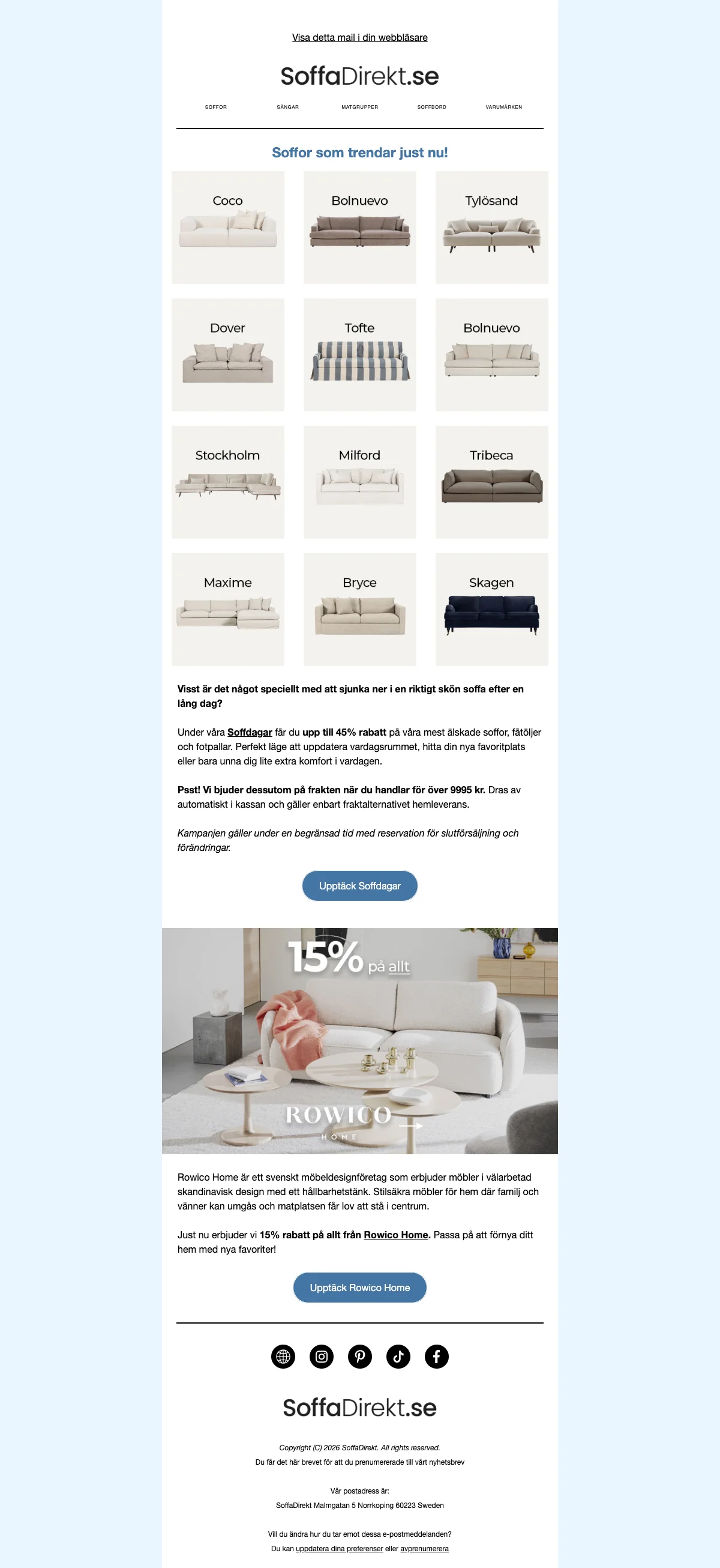 SoffaDirekt soffdagar soffor upp till 45% + fri frakt över 9995 kr