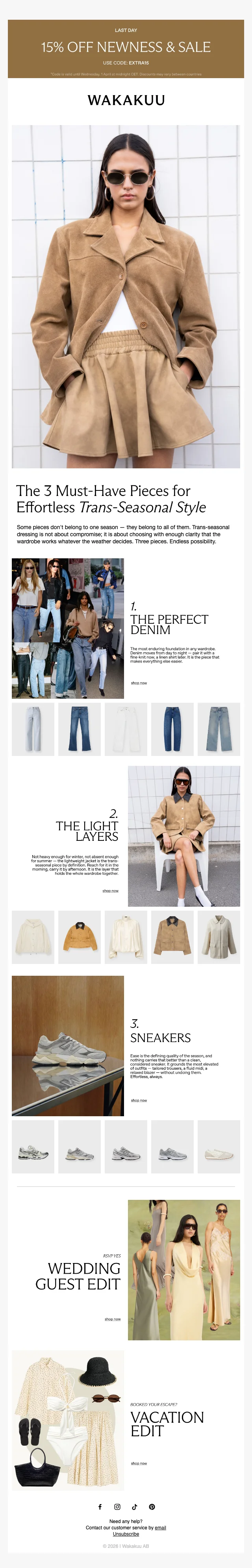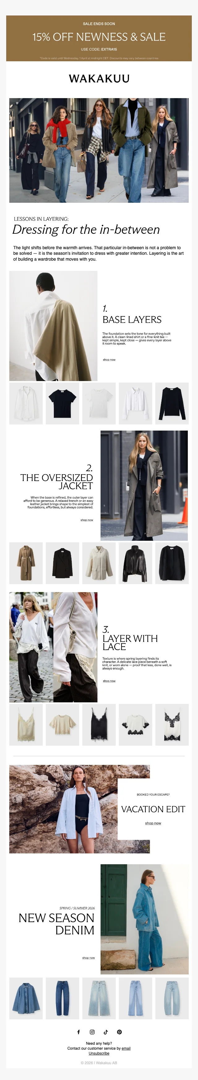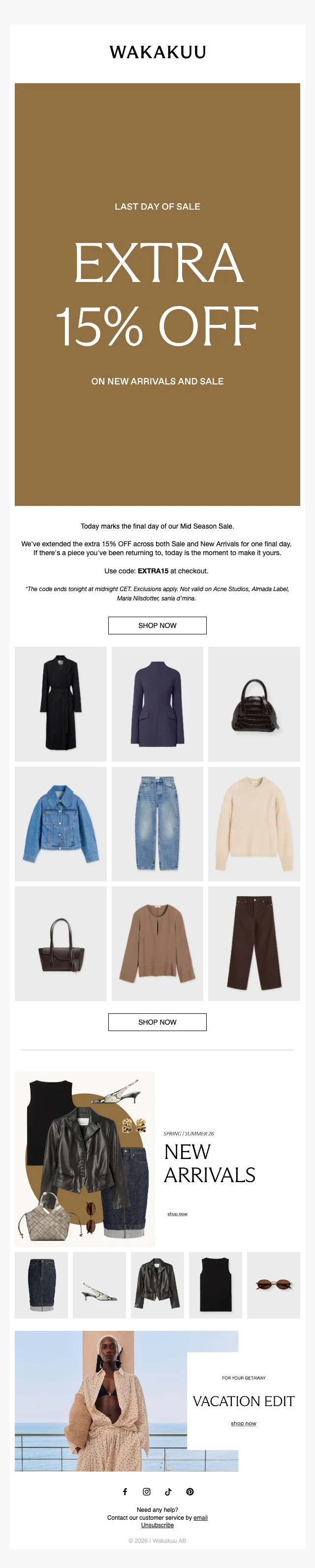 Wakakuu mid season sale 15% extra på rea och nyheter — sista dagen