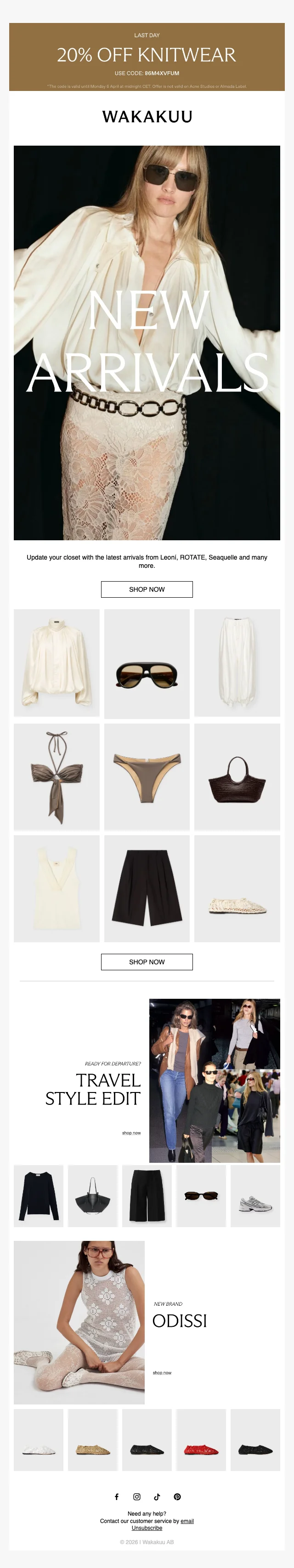 Wakakuu mellansäsongsrea upp till 50% rabatt på nya plagg