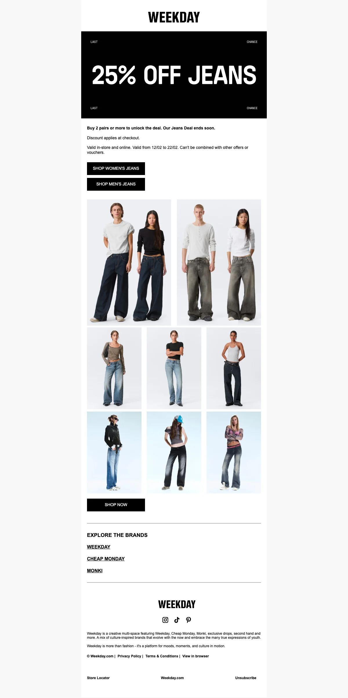 Weekday jeanskampanj: 25% rabatt på jeans vid köp av 2 par